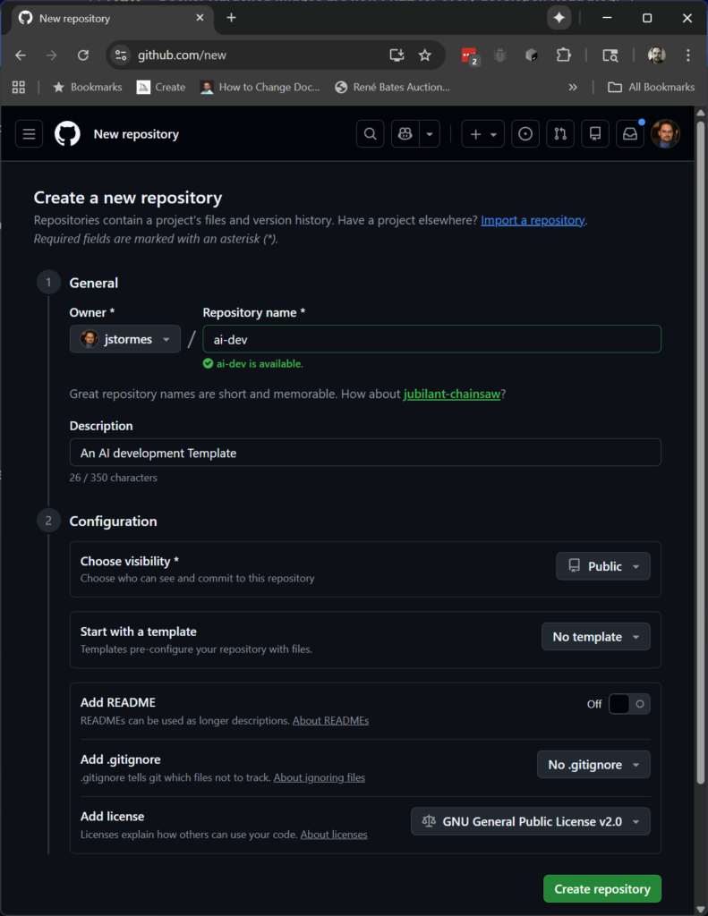 Below that will be the name we want to give our service. In this case we will name the first service ai-dev.
